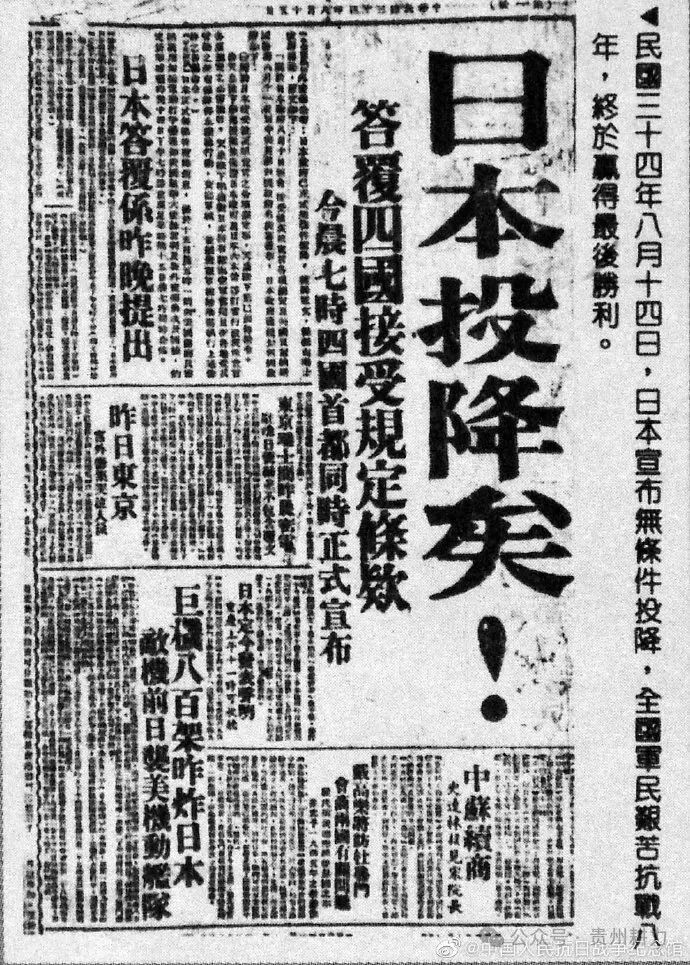 这一天, 疯狂肆虐的日本法西斯 低下罪恶的头颅 日本天皇裕仁发布《终战诏书》 宣布无条件投降